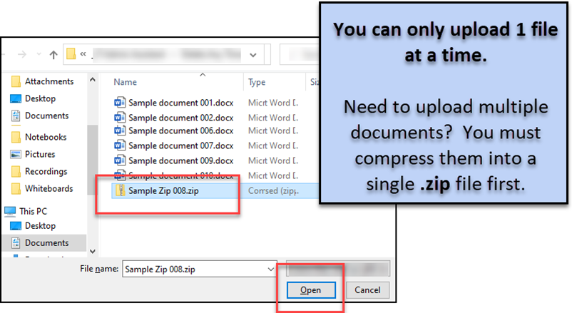 - Need to upload a large number of files? Compress them first into one single .zip file.
