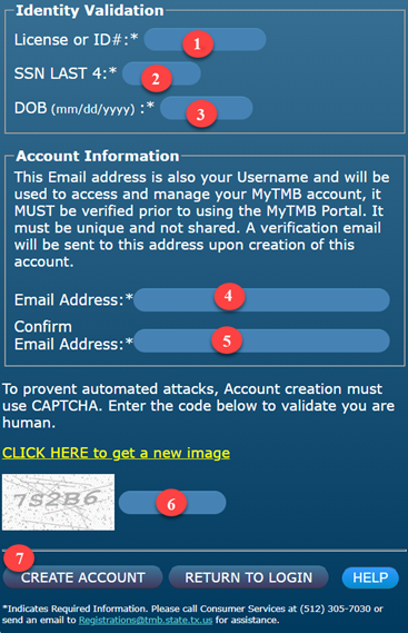 - Enter the CAPTCHA image or code displayed into the text box labeled 6. The text you enter is not case sensitive.