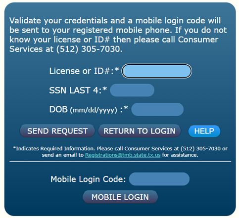 - You will receive a temporary mobile login code to your cell phone. Once you have received the code, enter it into the Mobile Login Code area.